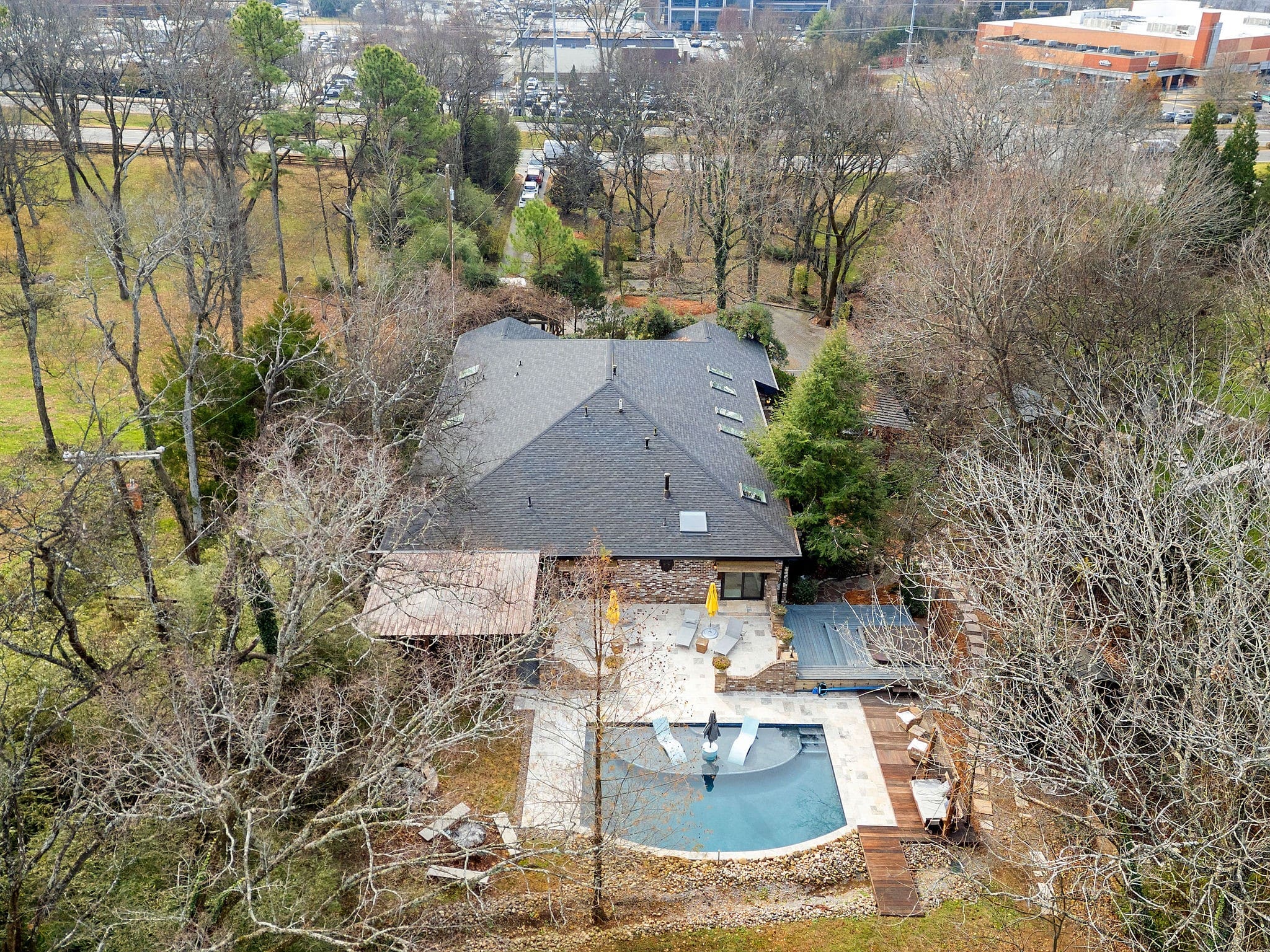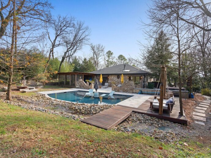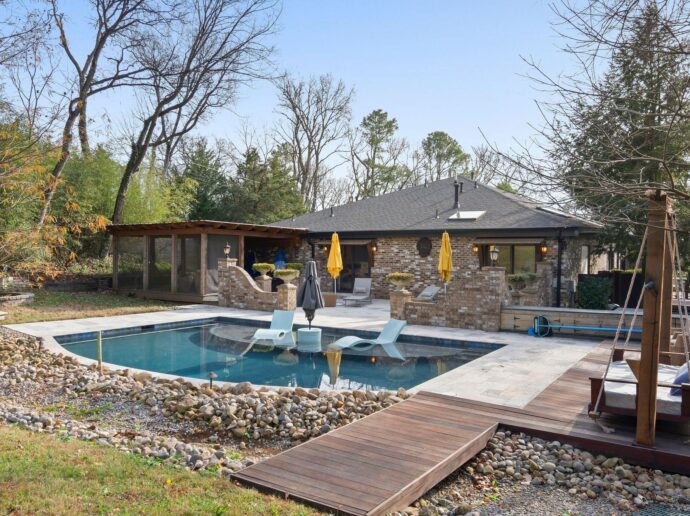 Welcome to a one-of-a-kind, single-level sanctuary offering 4,766 square feet of curated comfort and creative design on 2.39 acres of pure serenity. This home is for the buyer who wants privacy, style, and a daily dose of “wow. Step inside and let the soaring ceilings, expansive natural light, and modern open floorplan set the tone. The kitchen is sleek, fresh, and ready for anything from weeknight dinner to full-blown dinner-party magic. Every bedroom features its own exterior access, giving guests (and teenagers) the privacy they crave and giving you the peace you deserve. Outdoors? Honey… this is where she shines. Multiple living spaces spill out onto a backdrop of Radnor Lake, offering total tranquility—like having your own private retreat just moments from everywhere you need to be. The pool and hot tub turn your backyard into a resort, while the cobblestone driveway, oversized garage + workshop, and an additional parking pad check every box for everyday function. Whether you’re a nature lover, a design appreciator, or simply someone who refuses to settle for ordinary, this property delivers the space, creativity, and privacy you’ve been waiting for. Opportunities like this don’t come around often—and they certainly don’t stick around long. Conveniently located yet blissfully tucked away, this Brentwood treasure is ready to welcome its next lucky owner.