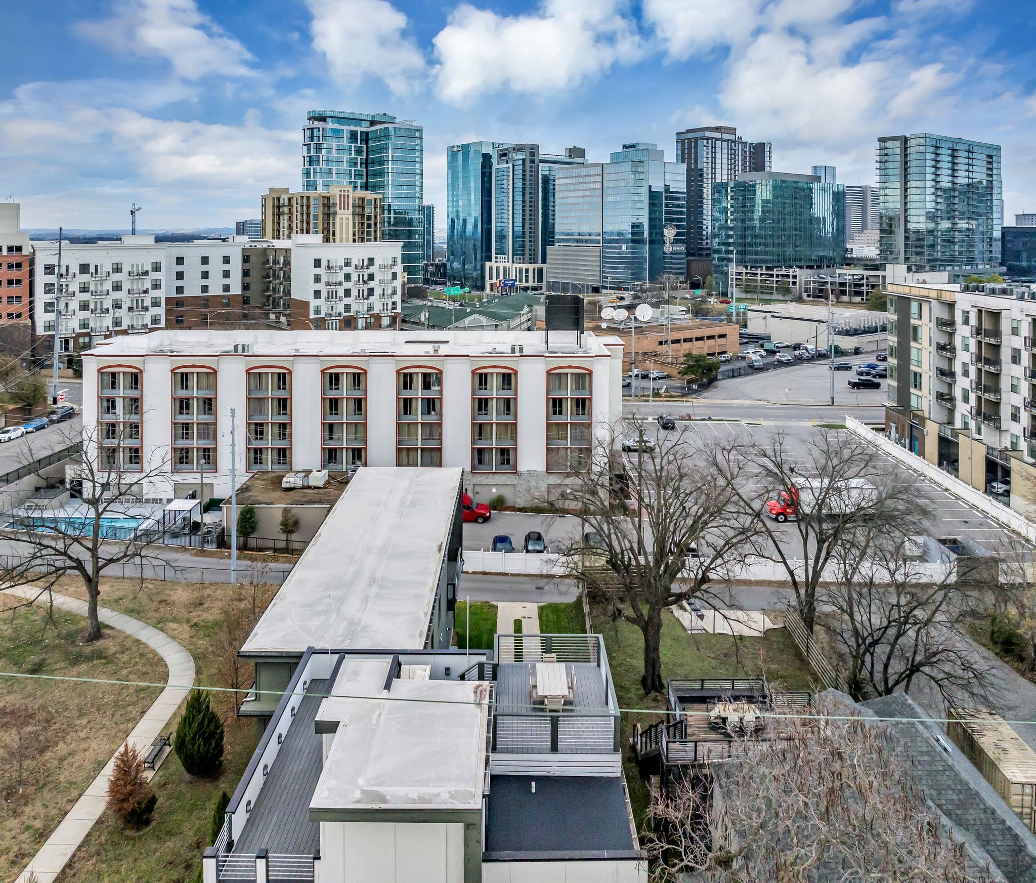 Perfectly positioned beside a serene 2.5-acre park in the heart of the city and steps from iconic Music Row, this unattached row home blends timeless design with modern luxury. A private elevator provides effortless access to all levels, the first floor living area is idea for hosting with designated rooms (entry foyer, dining room, open kitchen and living room) making it ideal for entertaining or daily life. Upstairs you’ll find four well-appointed bedrooms, with a tranquil primary suite thoughtfully separated from the others for privacy. Ascend to the rooftop terrace for sweeping panoramic views of downtown, an unforgettable backdrop for morning coffee, sunset gatherings, or quiet moments above the city. Additional highlights include: Soaring ceilings and an abundance of windows, hardwood floors throughout, spacious closets and storage, large, open living and dining spaces primed for entertaining, top-tier kitchen appliances, reverse osmosis whole house water filtration system, dual HVAC systems and a tankless water heater, attached two car garage and dedicated mudroom space, ample guest parking and so much more. With a park that lives like your own backyard and unmatched walkability to Music Row, Vanderbilt, The Gulch, and countless downtown favorites, this home delivers the rare combination of urban convenience, peaceful surroundings, and elevated living. Truly a perfect 10.