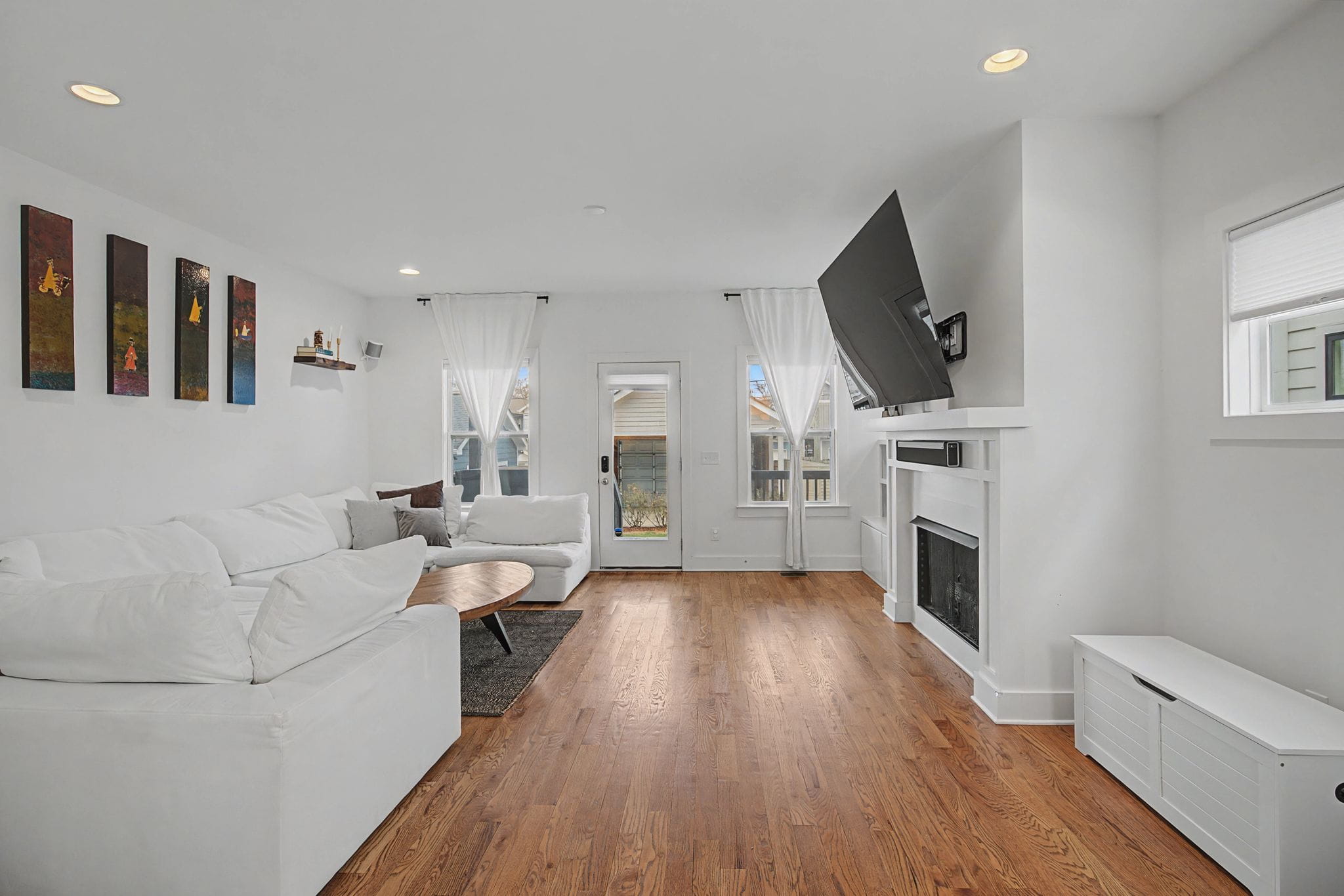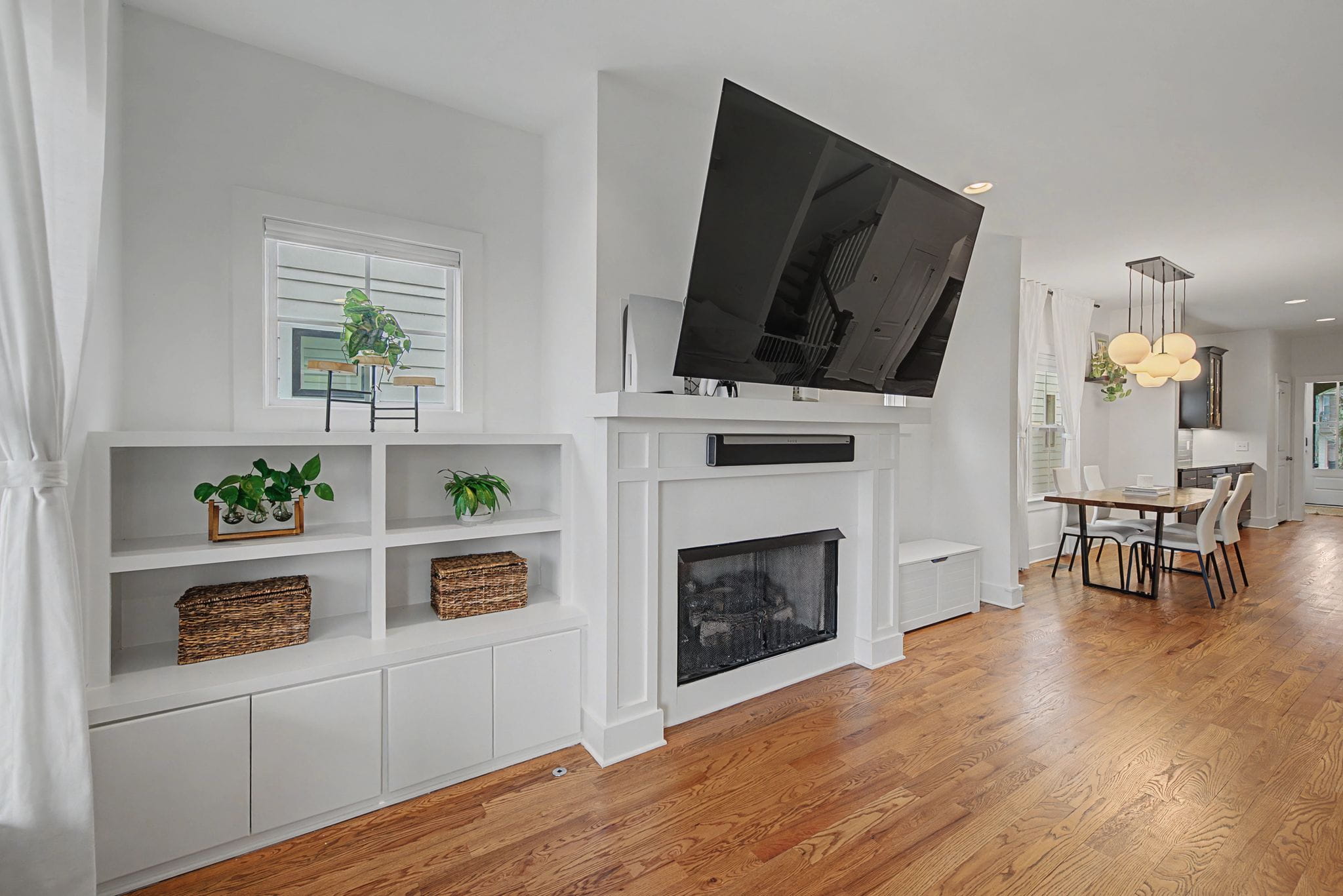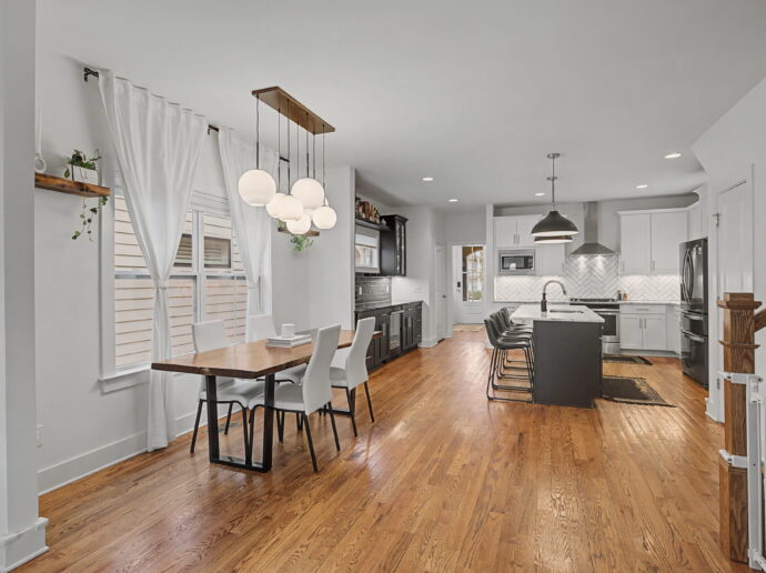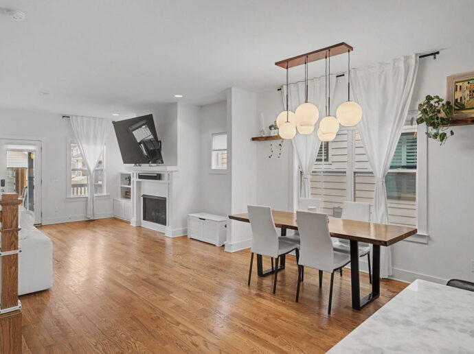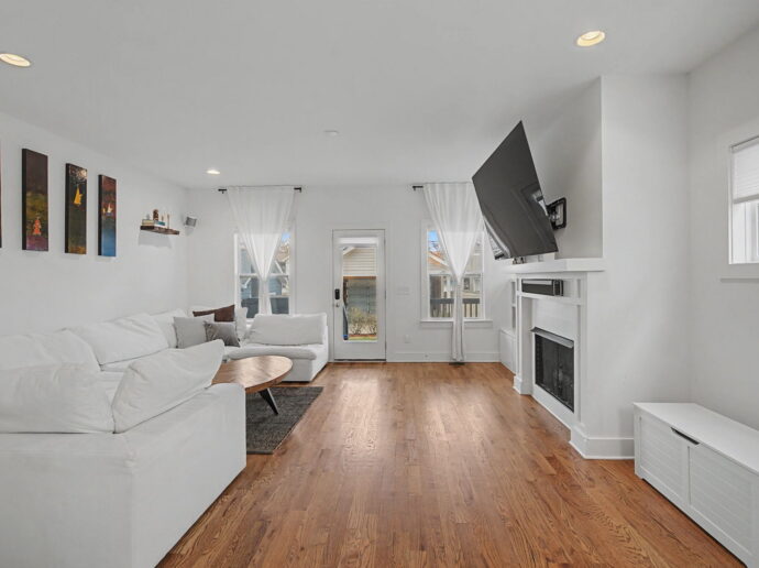 Perfectly positioned on a single-family lot just seconds from all of the Nation’s favorites, this fabulous, better-than-new gem truly checks every box. Featuring 4 spacious bedrooms, soaring vaulted ceilings, and an open floor plan, this home offers both style and functionality at every turn. The thoughtfully designed lower level bedroom includes custom built-ins, making it the perfect private office or flex space. In the heart of the home, you’ll find a stunning kitchen complete with a custom bar and wine refrigerator, ideal for entertaining. Gorgeous hardwood floors throughout, complemented by earthy, natural finishes that create a warm and inviting atmosphere. Enjoy outdoor living with two covered decks, plus plenty of room to relax and gather in both the front and back yards. A two car garage port with additional storage adds everyday convenience to this exceptional property. This home is truly a perfect 10; modern, stylish, and move-in ready.